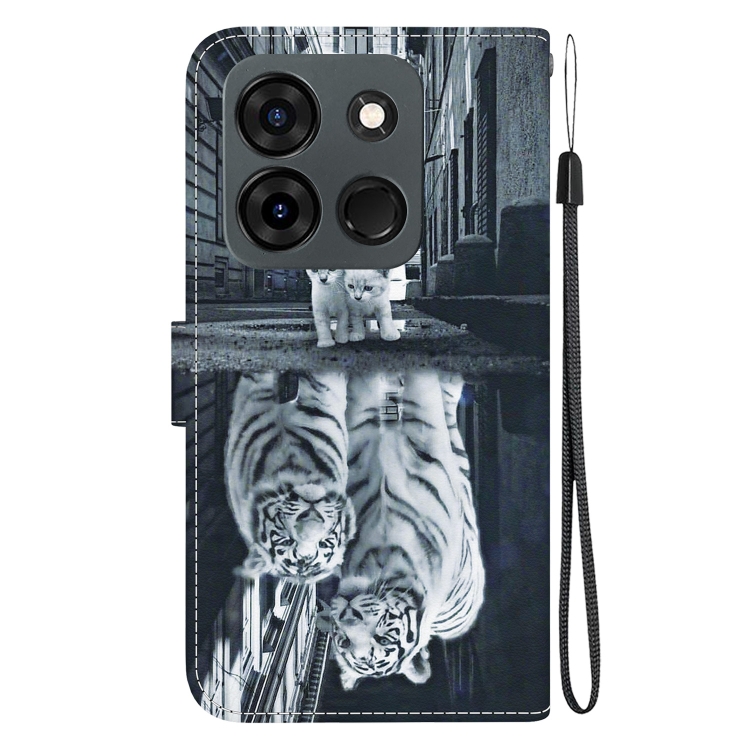 Funda de Cuero para Infinix Smart 7 con Dibujo Coloreado y Textura de Cristal Indio (Reflejo de Tigre Gato)
