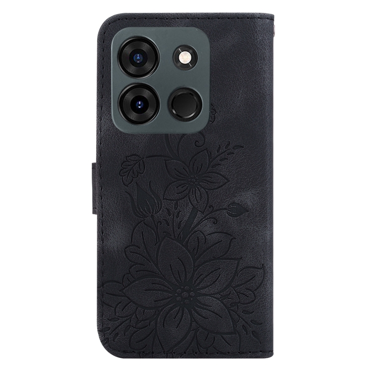 Funda de Cuero con Relieve Lily para Infinix Smart 7 India y Smart 7 Plus (Negro)