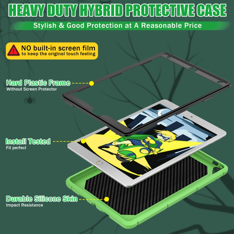 Funda Protectora para Tableta iPad 10.2 Silicona + PC a Prueba de Golpes (Verde + Negro)