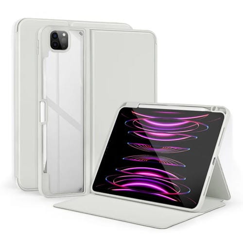 Funda para Tableta iPad Air 13 2024 y Pro 12.9 2022 Cuero Acrílico Transparente 2 Pliegues (Gris Claro)