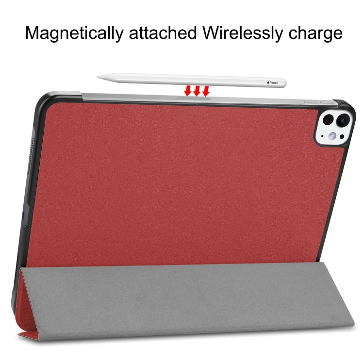 Funda de Cuero Inteligente Custer Pure Color con 3 Pliegues para iPad Pro 11 (2024) (Rojo Vino)