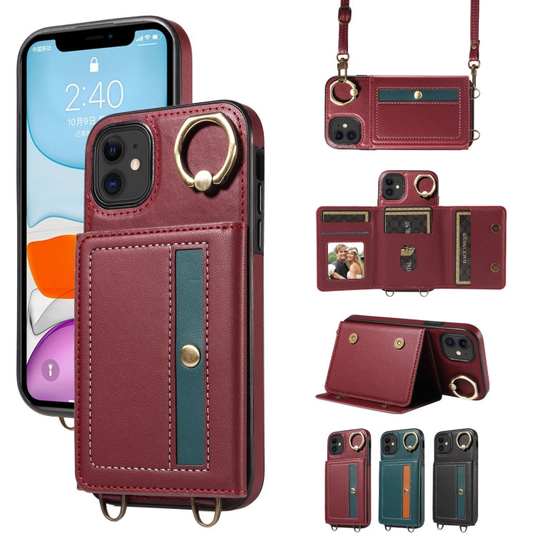 Funda para iPhone 11 Crossbodys Card Bag Ring Holder de Cuero (Rojo)