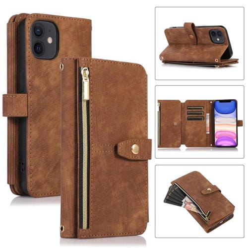 Funda de Cuero para Teléfono iPhone 11 Dream 9-Card Wallet Zipper Bag (Marrón)