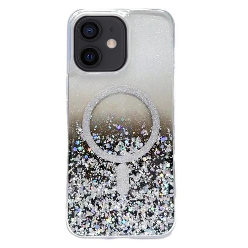 Pour iPhone 11 Étui de téléphone PC TPU hybride MagSafe à paillettes dégradées (dégradé noir)
