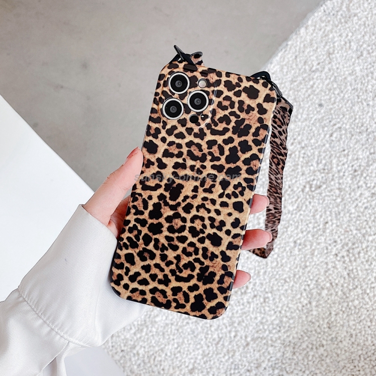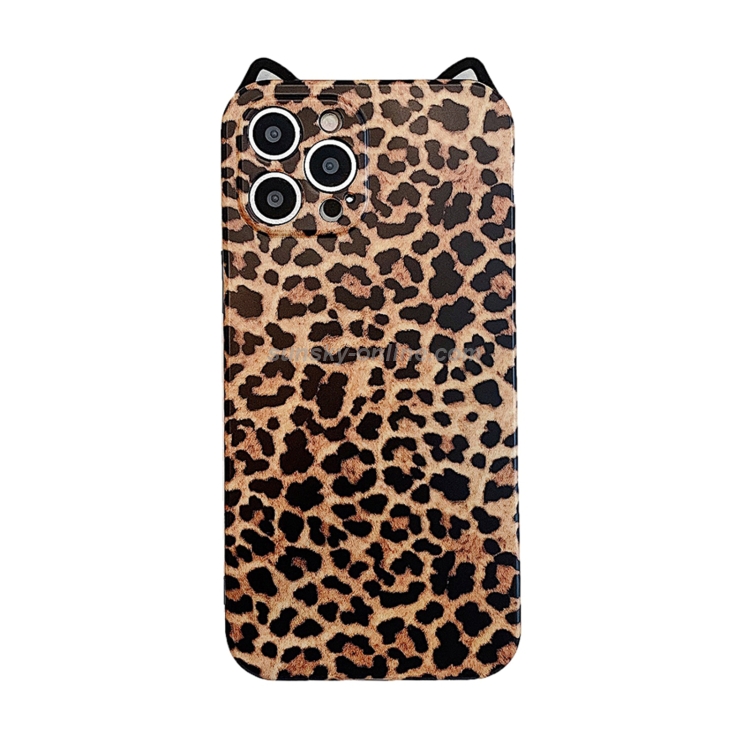 Estuche para iPhone 11 Pro Cat Ear Leopard Print TPU Protector de Borde Recto con Cordón (Marrón)