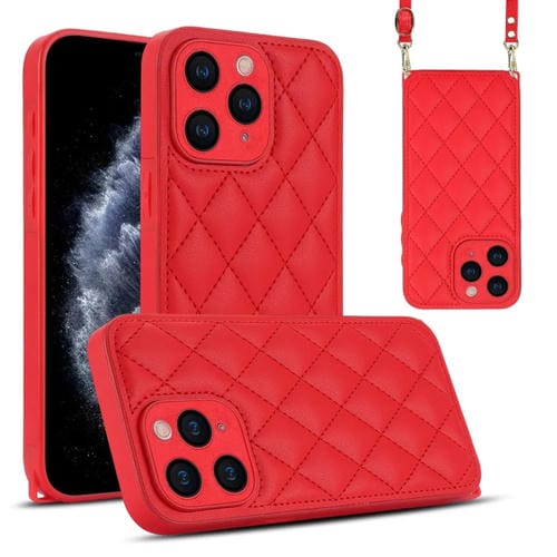 Estuche para Teléfono iPhone 11 Pro Textura Rómbica y Cordón Doble (Rojo)