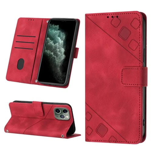 Estuche para Teléfono iPhone 11 Pro Cuero En Relieve con Tacto de Piel (Rojo)