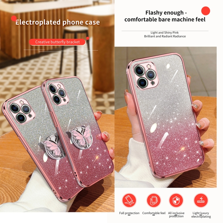 Funda para Teléfono TPU para iPhone 11 Pro con Soporte de Mariposa y Brillo Degradado (Negro)