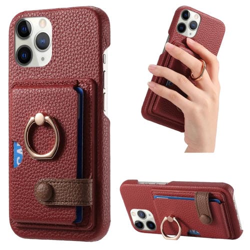 Pour iPhone 11 Pro Litchi Cuir Oil Edge Ring Card Back Phone Case (Rouge)