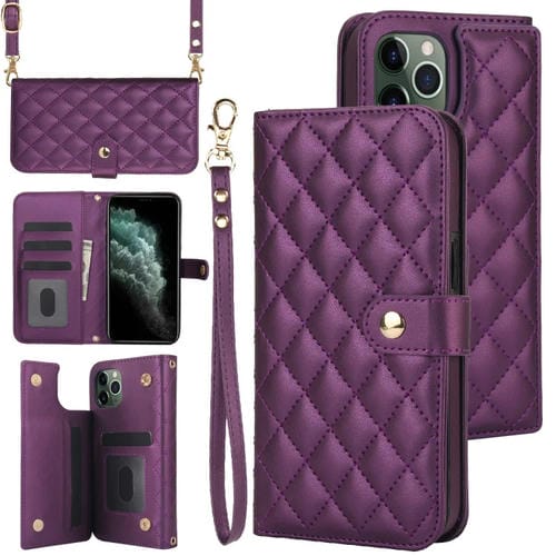 Estuche para Teléfono iPhone 11 Pro Max Cuero Rómbico Multifunción Crossbody (Púrpura Oscuro)