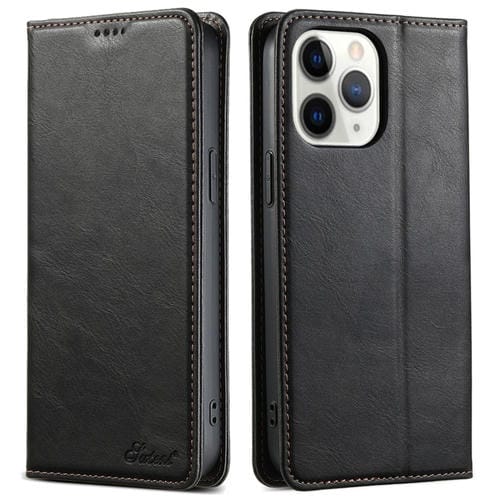 Funda para iPhone 11 Pro Max Suteni J02 de Cuero con Billetera de Cera de Aceite (Negro)