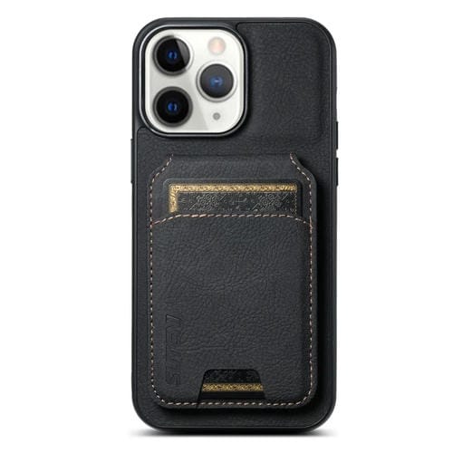 Funda para teléfono Suteni H02 para iPhone 11 Pro con soporte y billetera de cuero Litchi (Negro)
