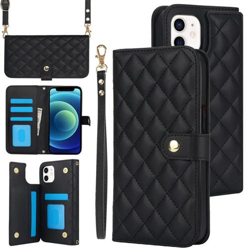 Estuche para Teléfono iPhone 12/12 Pro Cuero Rómbico Multifunción Cruzado (Negro)