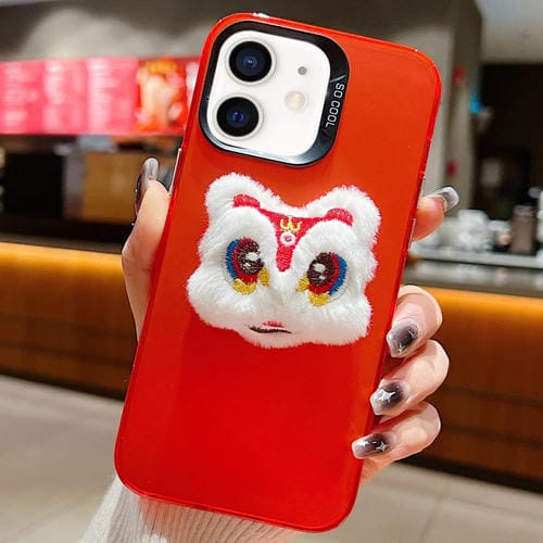 Funda para iPhone 12 Felpa Danza del León Año Nuevo (León Blanco Trasero Rojo)