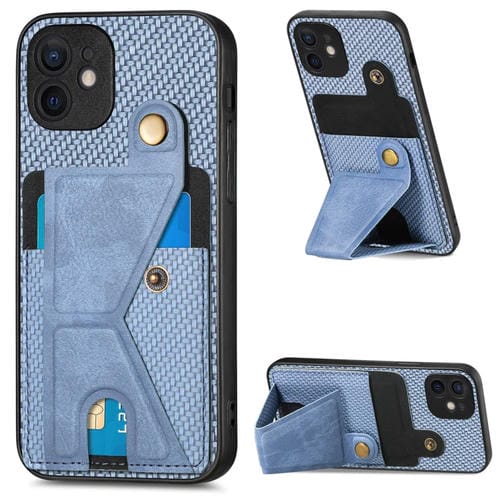 Funda para Teléfono iPhone 12 Carbon Fiber Wallet Flip Card con Soporte en Forma de K (Azul)
