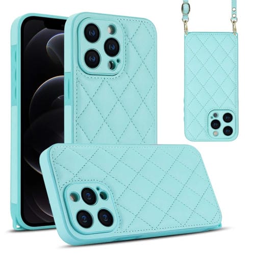 Estuche para Teléfono iPhone 12 Pro Textura Rómbica Cordón Doble (Verde)