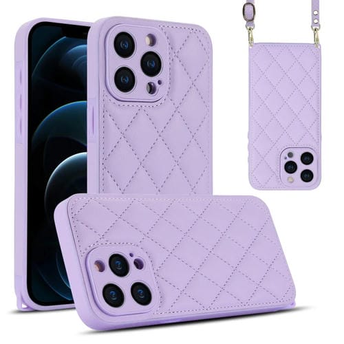 Estuche para Teléfono iPhone 12 Pro Max Textura Rómbica Cordón Doble (Púrpura)