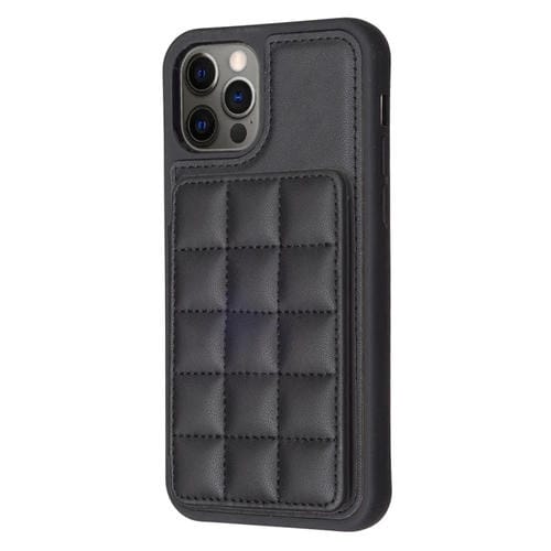 Funda para iPhone 12 Pro Max Grid Card Slot Holder Phone Case (Negro)