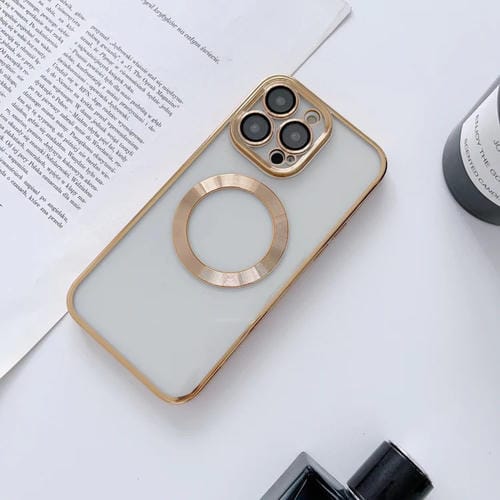 Caja de teléfono TPU Magnética Galvanizada para iPhone 12 Pro Max Magsafe con Filtro de Polvo y Película de Lente (Oro)