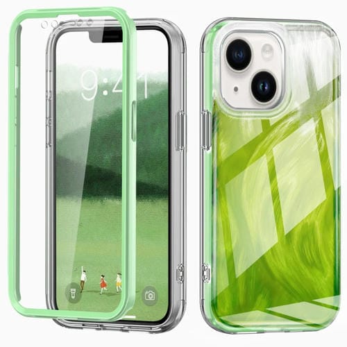 Pour iPhone 13 2 en 1 IMD Gradient Feather PC + TPU Phone Case (Vert)
