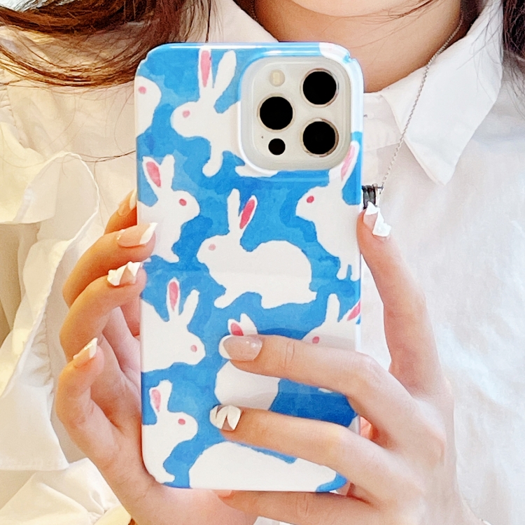 Funda para iPhone 13 Pro Cartoon Film Craft Hard PC Phone Case (Graffiti Rabbit)