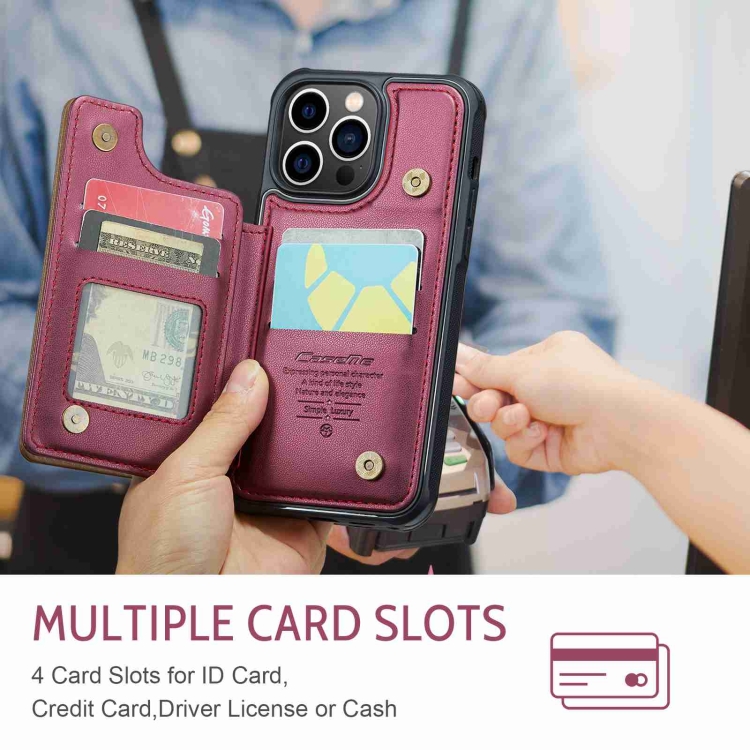 Estuche para Teléfono Caseme C22 para iPhone 13 Pro Antirrobo con Ranuras para Tarjetas Rfid (Rojo Vino)