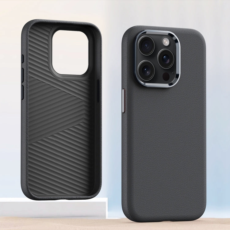 Estuche para Teléfono iPhone 13 Pro Cuero Marco de Lente Metal (Gris)