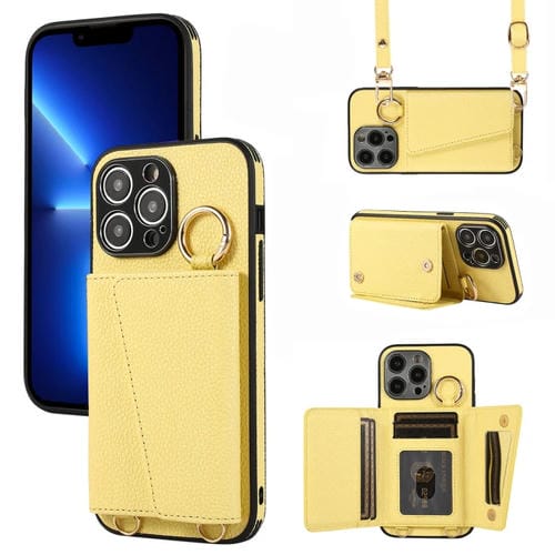 Funda para Teléfono iPhone 13 Pro Cubierta Trasera de Cuero con Anillo Cruzado (Amarillo)