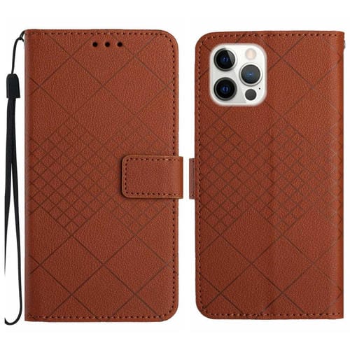 Estuche para Teléfono iPhone 13 Pro Max Cuero Textura Rejilla Rómbica (Marrón)
