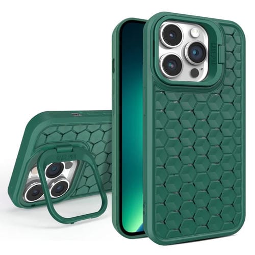 Funda magnética para teléfono iPhone 13 Pro Max Honeycomb Radiating Lens Holder (Verde)