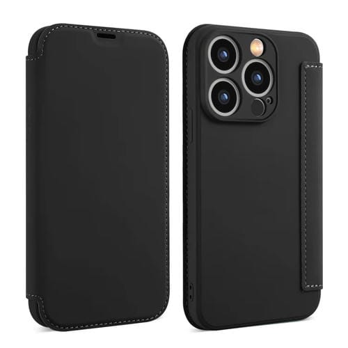 Funda de Cuero para iPhone 13 Pro Max Imitate Liquid Skin Feel con Ranuras para Tarjetas (Negro)