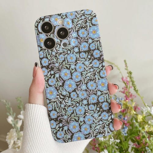 Pour iPhone 13 Pro Max Autocollant d'eau Motif de fleur PC Phone Case (Fleur bleue)