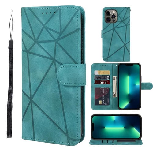 Funda para iPhone 13 Pro Skin Feel Cuero con Líneas Geométricas (Verde)