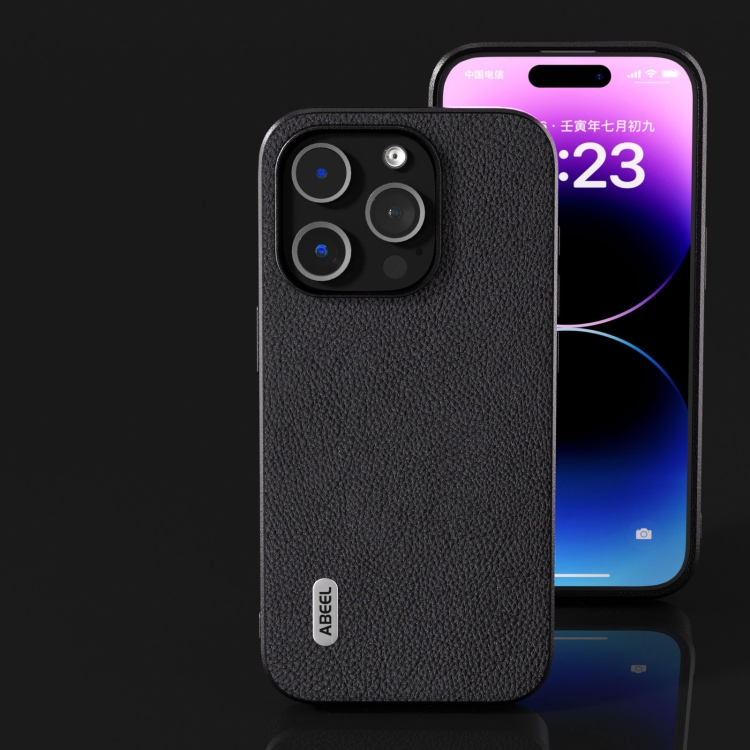 Funda para iPhone 14 Abeel Genuine Leather + PC Litchi Texture Phone Case (Negro)