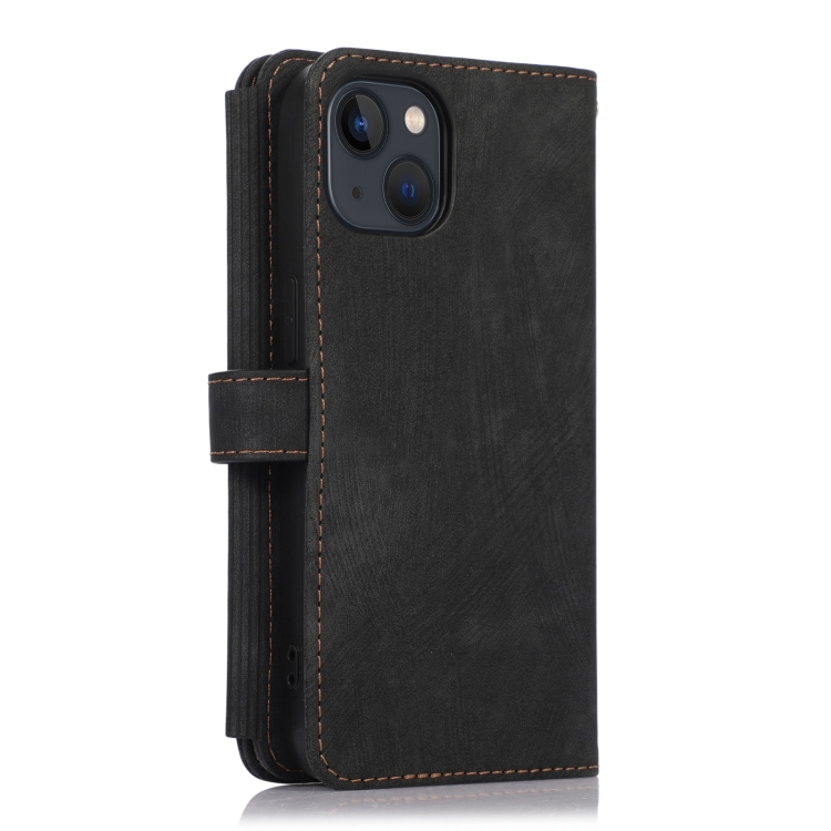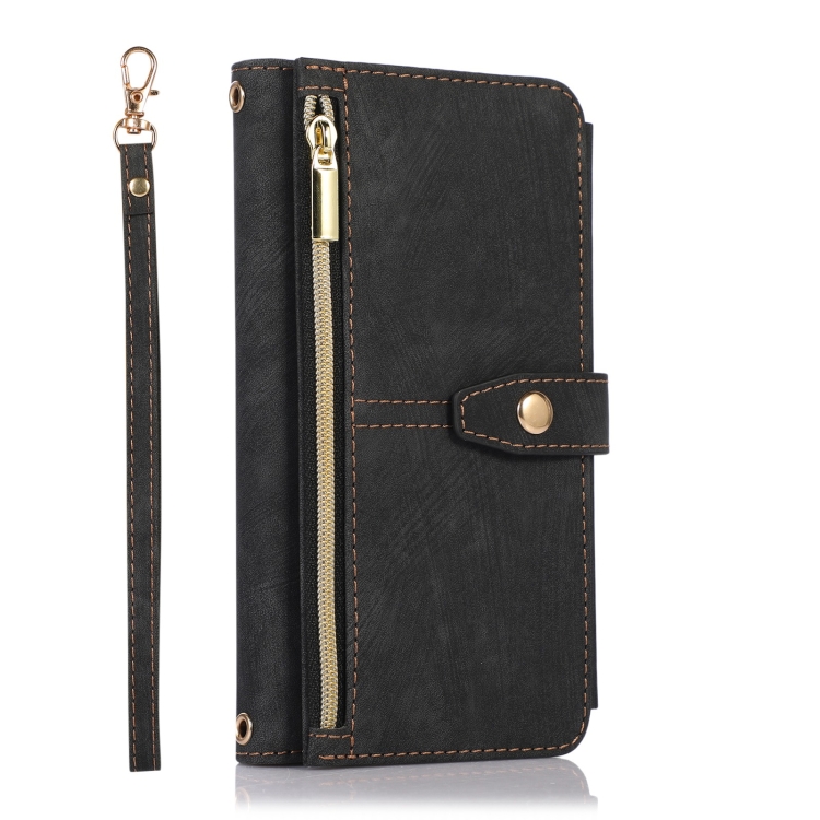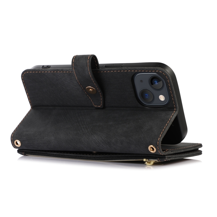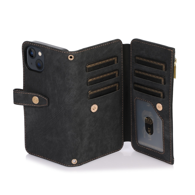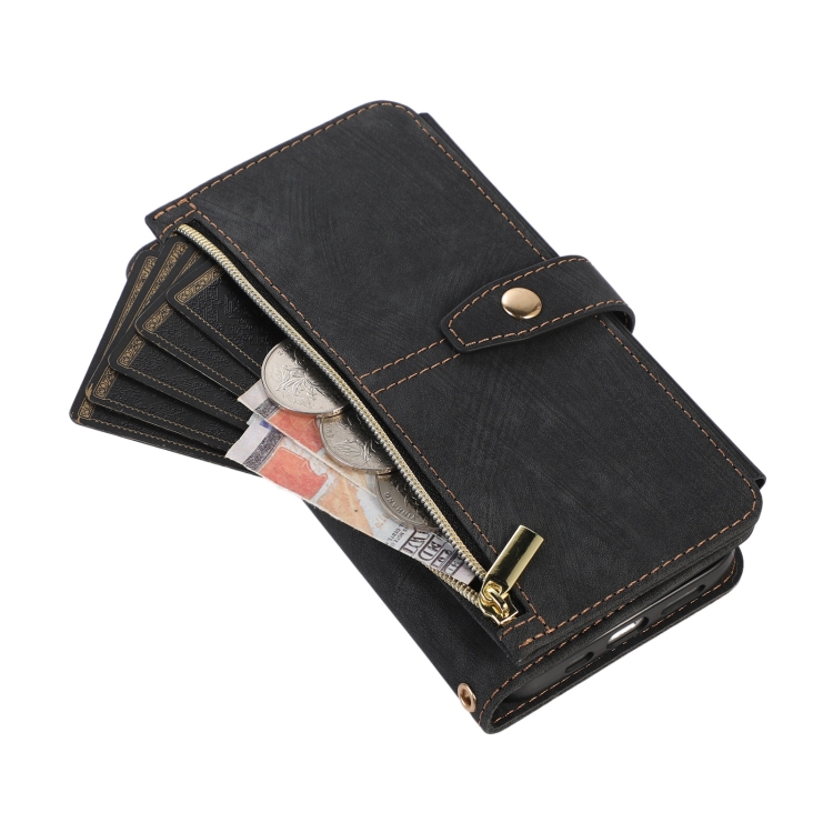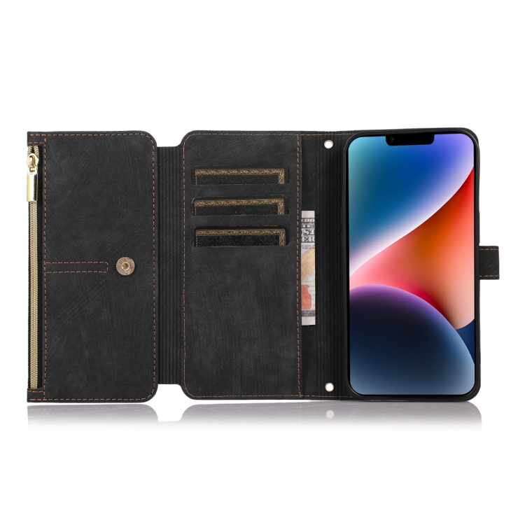 Funda para iPhone 14 Dream 9-Card Wallet Zipper Bag de Cuero para Teléfono (Negro)