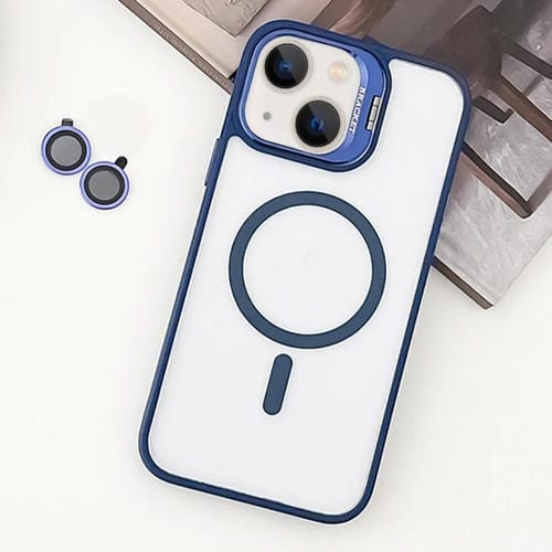 Pour iPhone 14 MagSafe Acrylique Hybrid TPU Kickstand Phone Case avec film d'objectif (bleu profond)