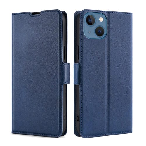 Estuche para teléfono iPhone 14 Cuero con hebilla lateral voltaje ultrafino (Azul)
