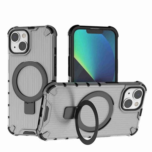 Funda para Teléfono iPhone 14 con Soporte Rejilla a Prueba de Golpes (Negro Transparente)