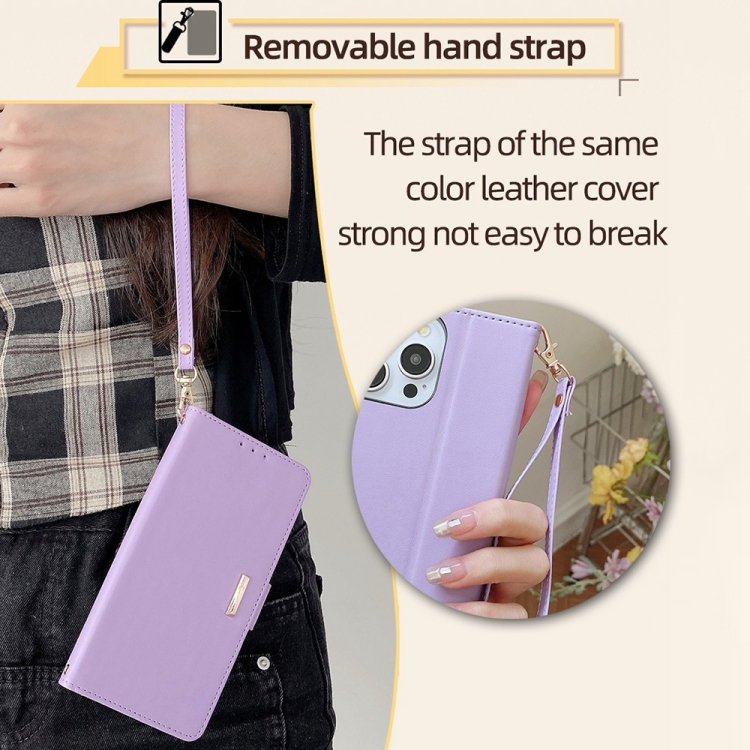 Funda para Teléfono iPhone 14 Cuero con Cadena Cruzada (Púrpura)