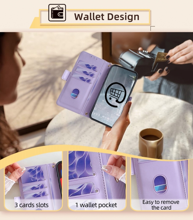 1. Material: parte inferior de TPU, la cartera de cuero de PU se siente delicada, hermosa y con un aspecto moderno.