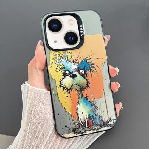 Funda para Teléfono iPhone 14 Imd Animal Graffiti TPU y PC Doble Cara (Perro Furioso)