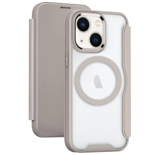 Pour iPhone 14 MagSafe RFID Adsorption Blocage Étui de téléphone à rabat en cuir (Kaki)