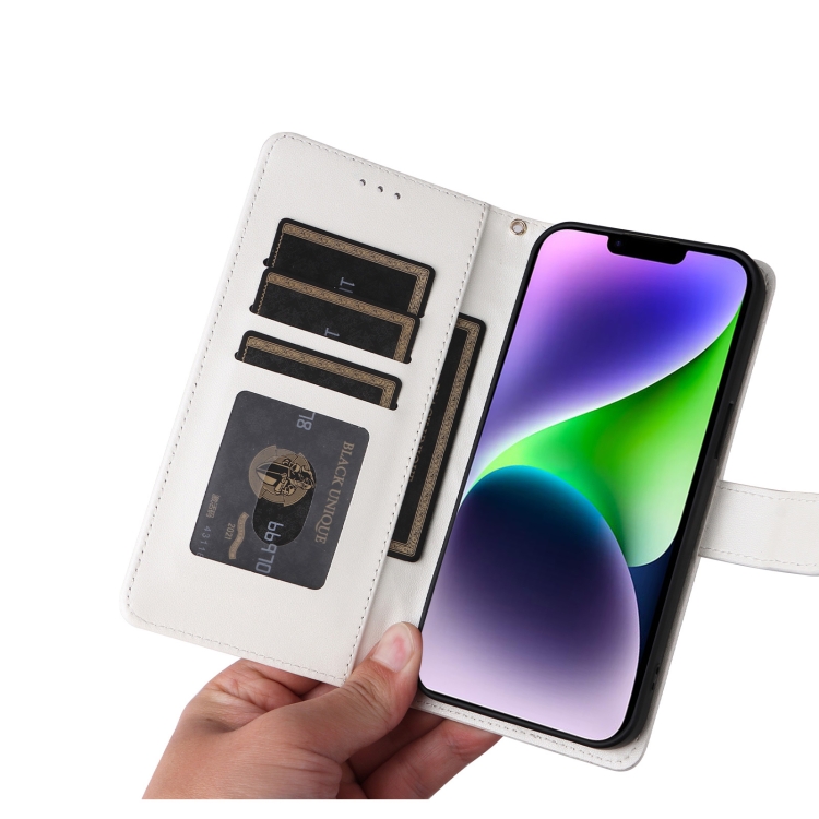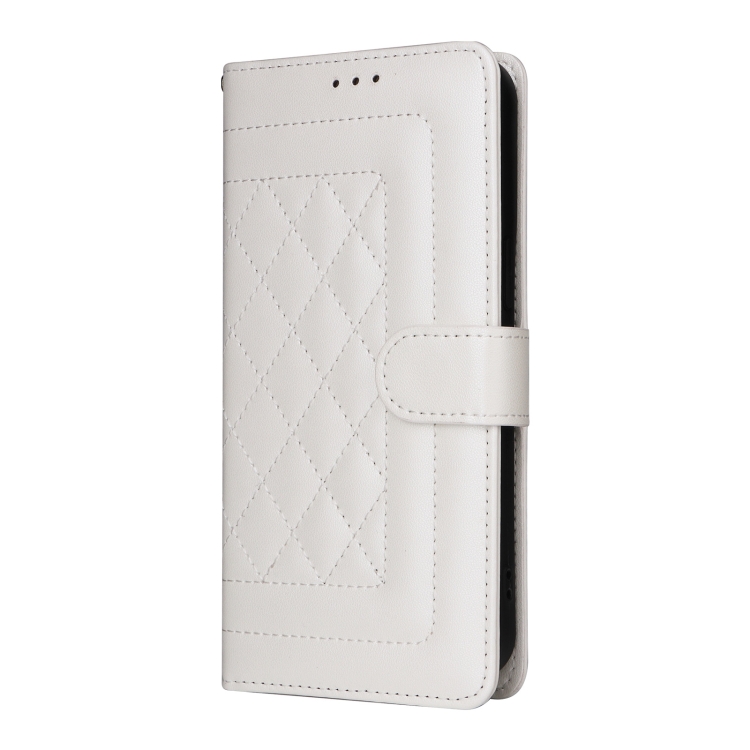 Pour iPhone 14 Plus Étui de téléphone à rabat en cuir à treillis de diamants (blanc)