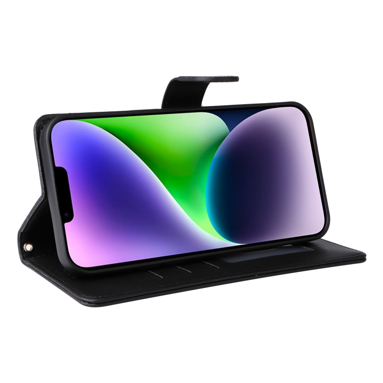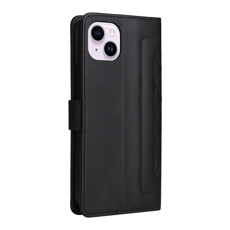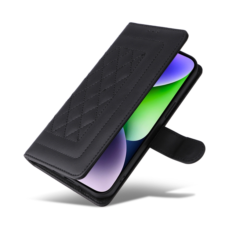 Pour iPhone 14 Plus Étui de téléphone à rabat en cuir à treillis de diamants (Noir)