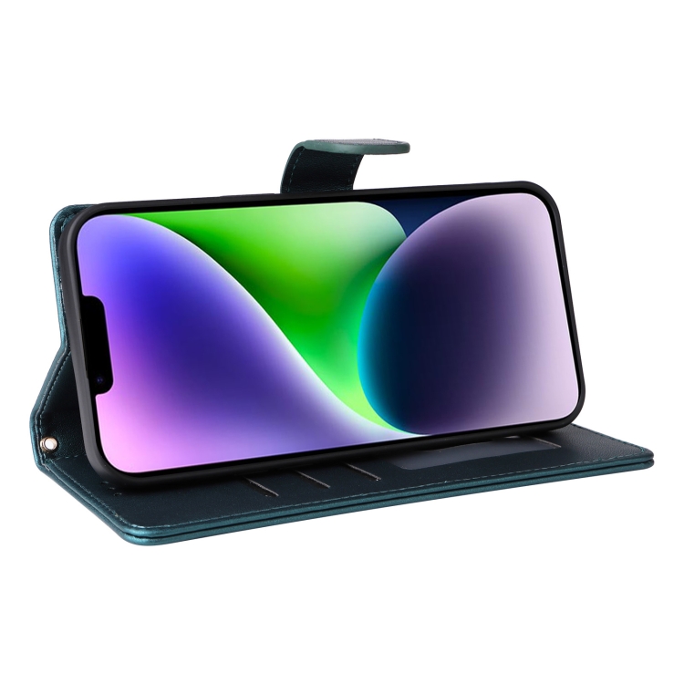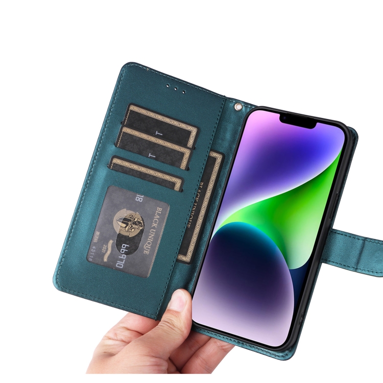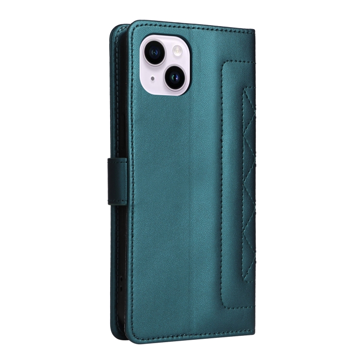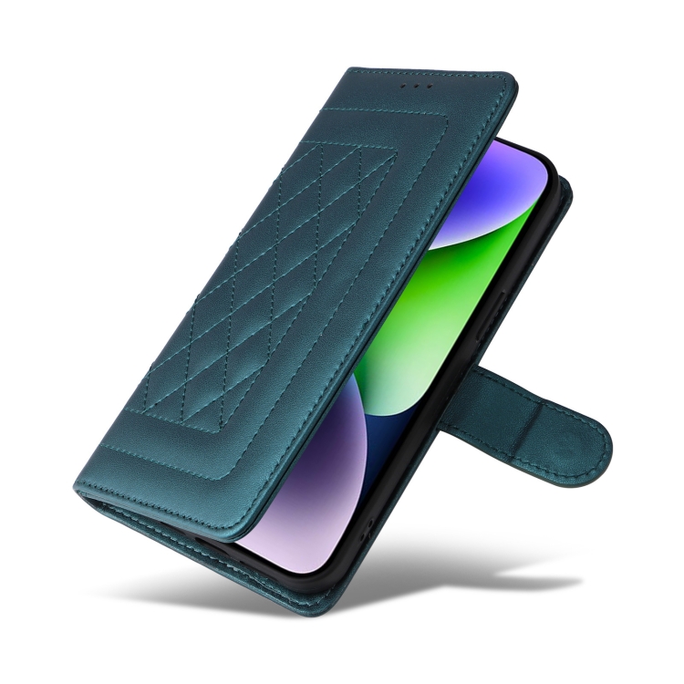 Pour iPhone 14 Plus Étui de téléphone à rabat en cuir à treillis de diamants (Vert)