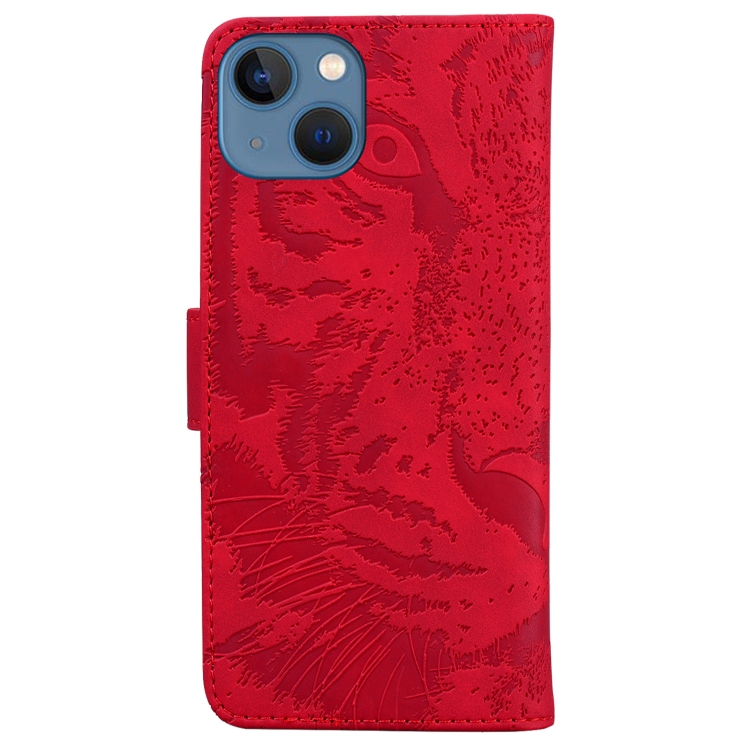Funda de Cuero para iPhone 14 Plus Tiger Embossing Pattern (Rojo)