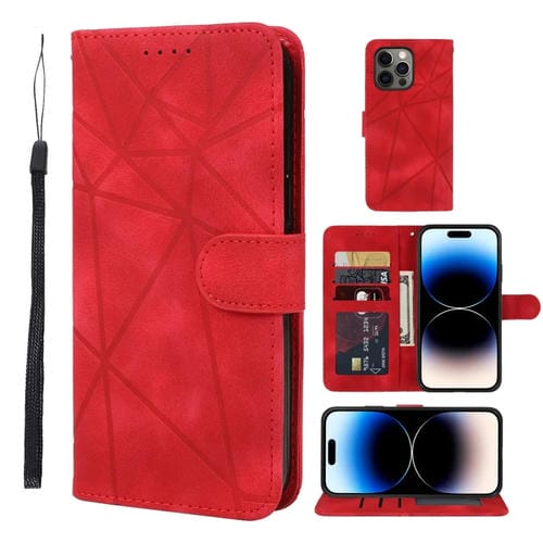 Funda de Cuero para Teléfono iPhone 14 Pro Skin Feel Líneas Geométricas (Rojo)