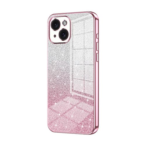 Estuche para Teléfono iPhone 15 Galvanizado con Polvo de Brillo Degradado (Rosa)