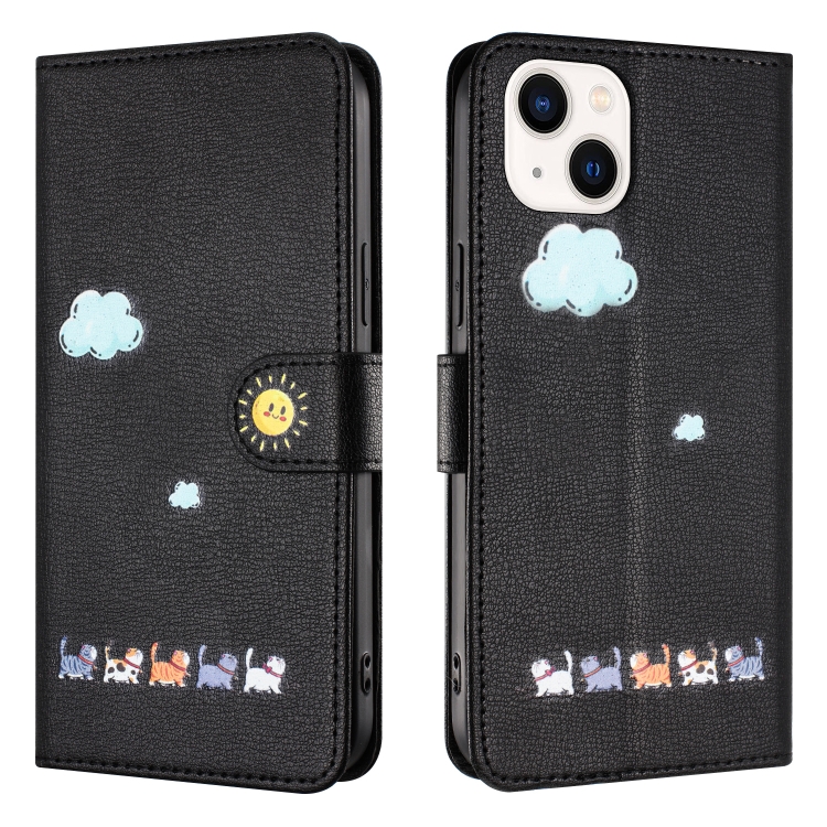 Funda para Teléfono iPhone 15 Cuero Gatos Dibujos Animados (Negro)