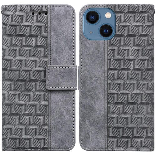 Pour iPhone 15 Étui de téléphone en cuir gaufré géométrique (gris)